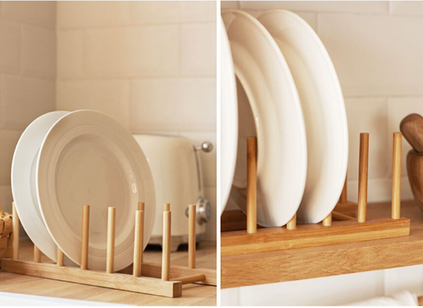 주방을 깔끔하게 그릇, 접시들을 깔끔하게 정리할 수 있는 모던하면서 내추럴한 디자인의 밤부접시거치대에요. 주방 선반에 겹겹이 쌓여 있어 꺼내기 힘들었던 접시나 그릇을 세워서 보관하면 꺼낼 때 편리하고, 주방도 더욱 깔끔하게 정리할 수 있어요.