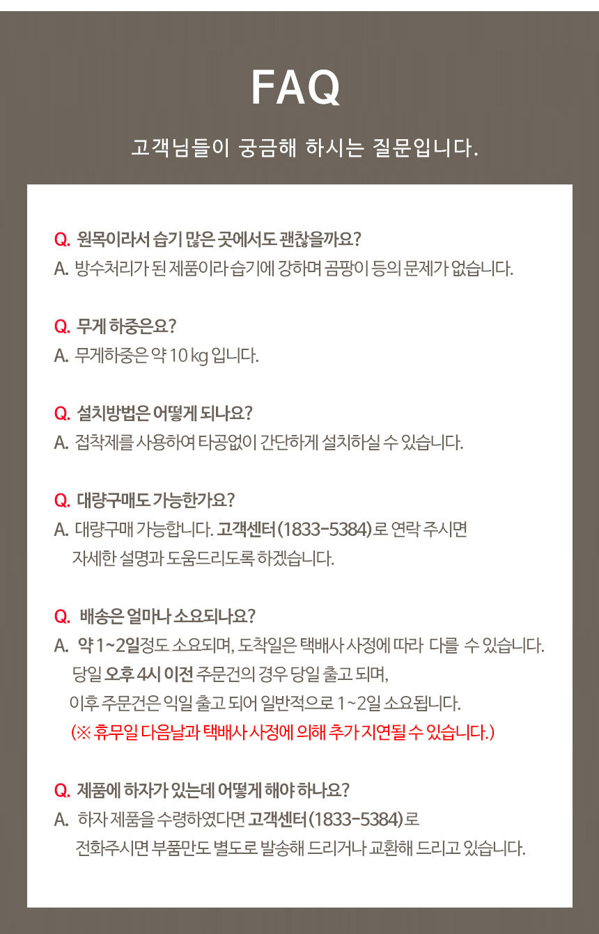 - 총 결제 금액이 5만원 이상은 무료배송이며, 5만원 미만 주문시 배송료 3,000원이 부과 됩니다.