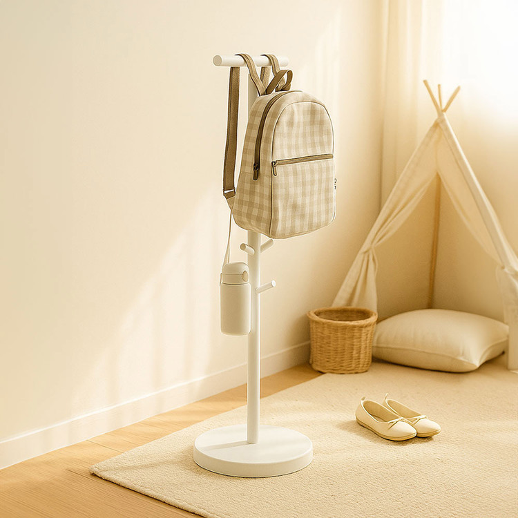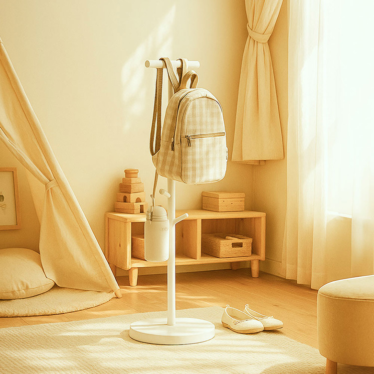 튼튼한 철제 구조와 둥글게 마감된 안전 설계 아이 키에 맞춘 4단 옷걸이로 자율 정리를 유도해요. 무게 중심이 낮은 넓은 받침대로 쉽게 넘어지지 않아요.