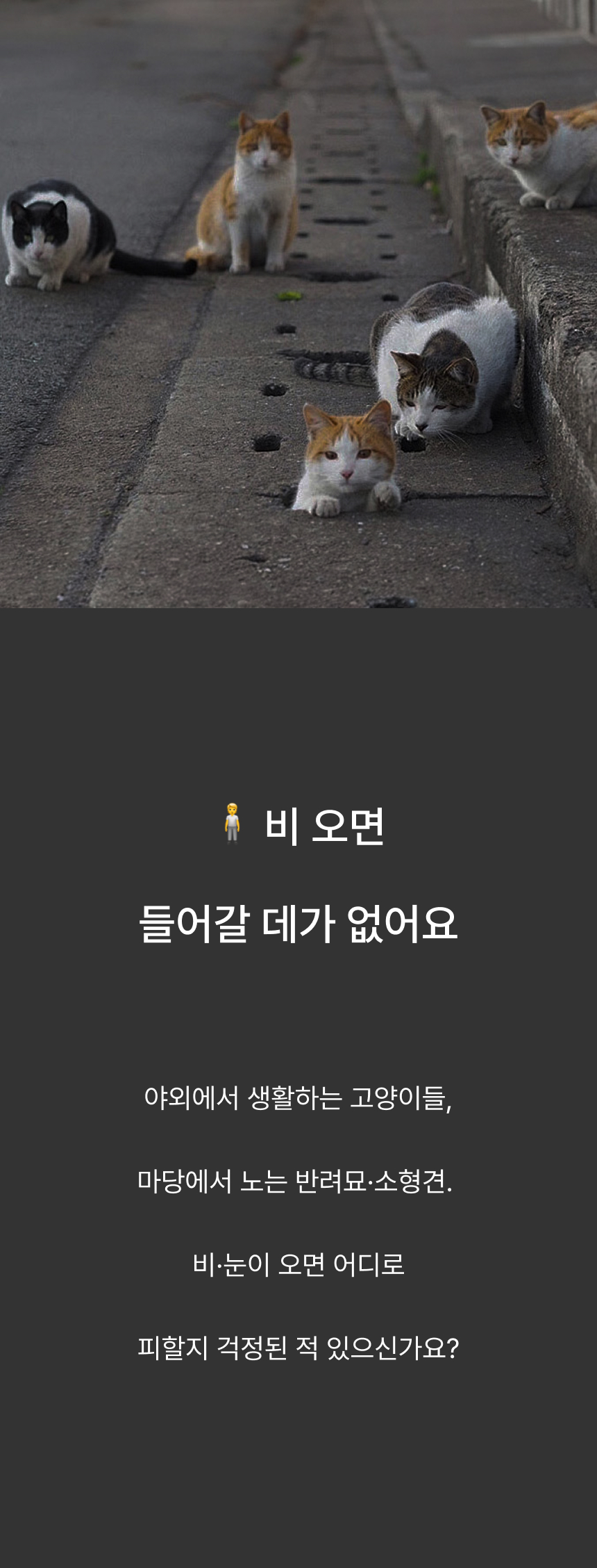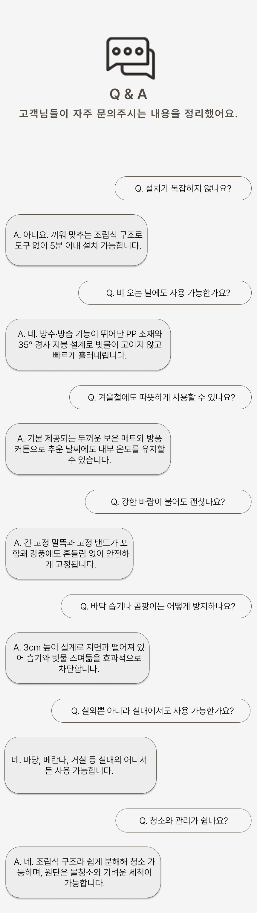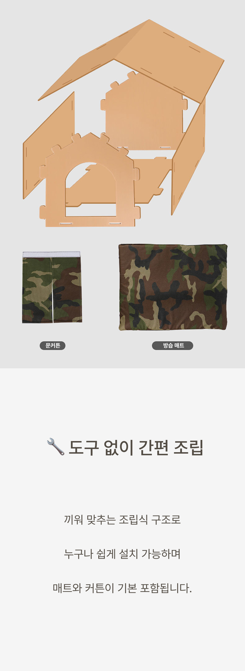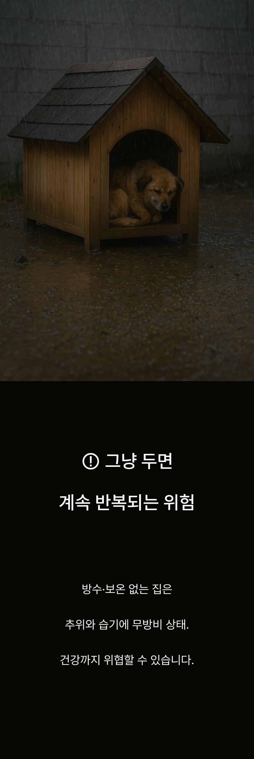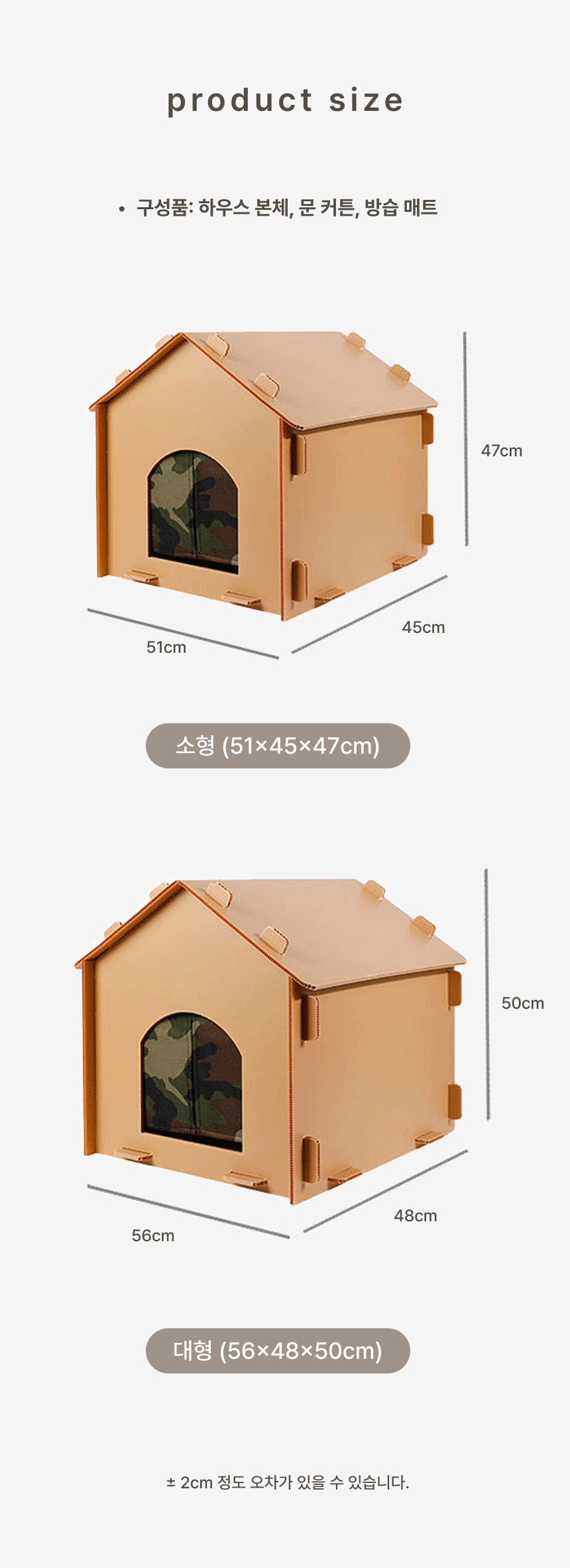 경사 지붕과 높은 바닥 구조로 물 고임, 습기를 차단하고 두꺼운 PP소재와 옥스퍼드 원단으로 긁힘, 마모, 부식까지 방지하는 포근방수 펫하우스입니다.