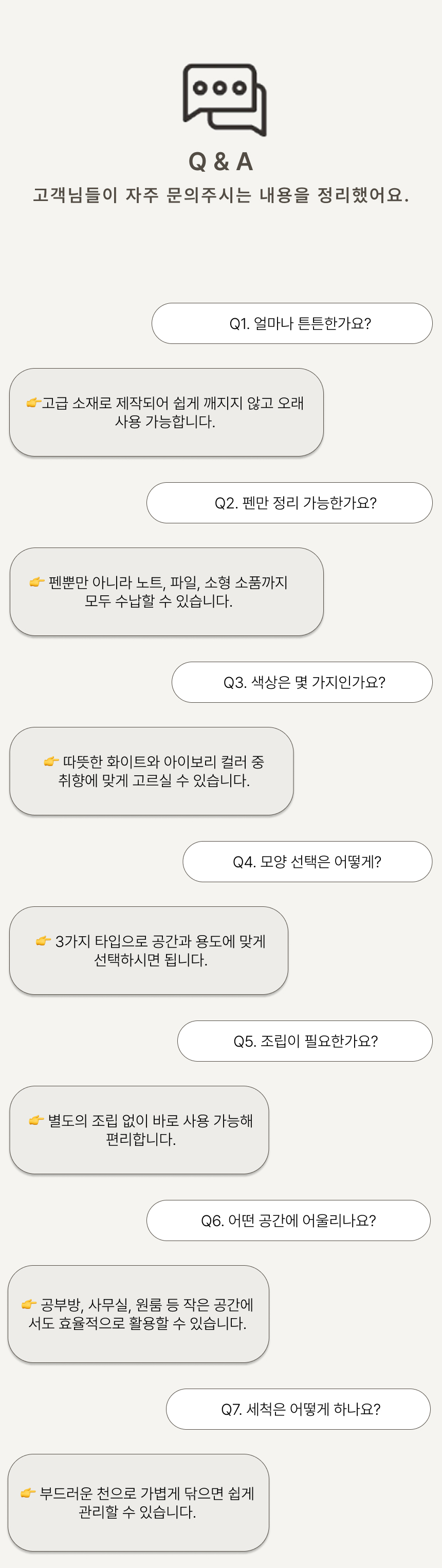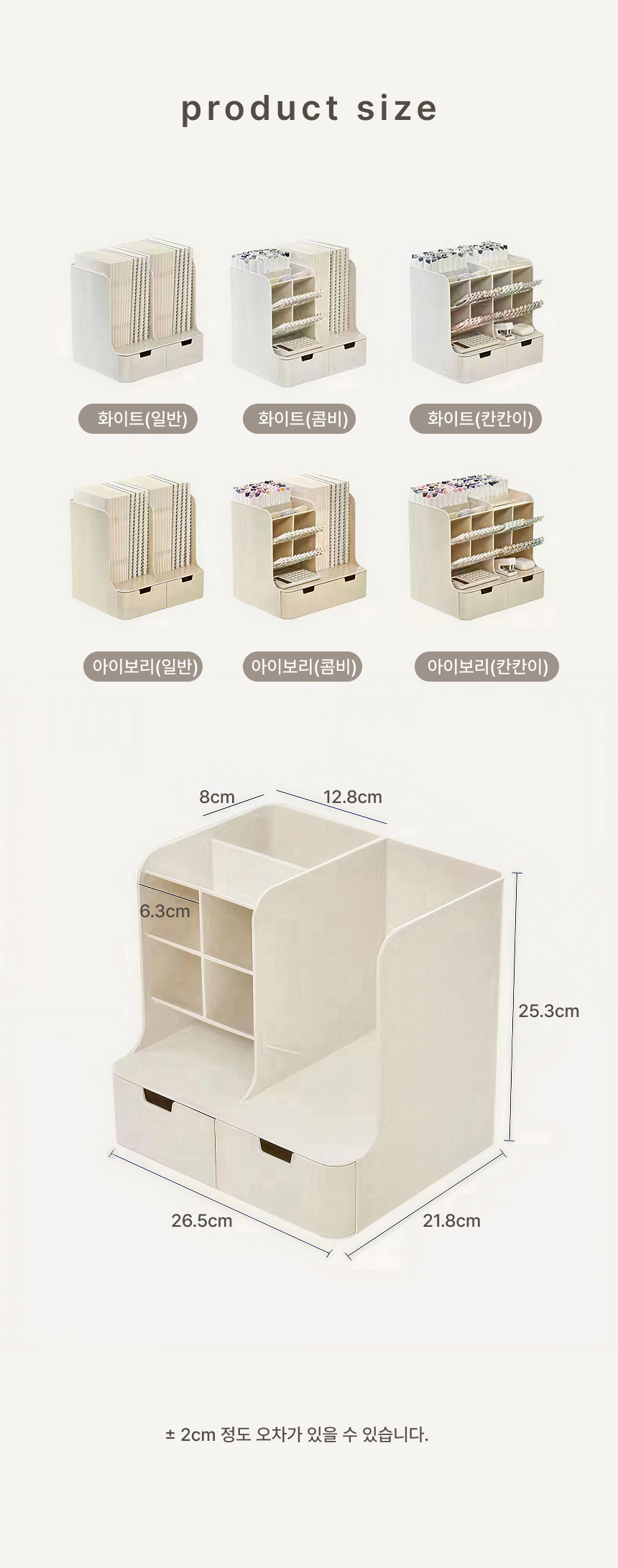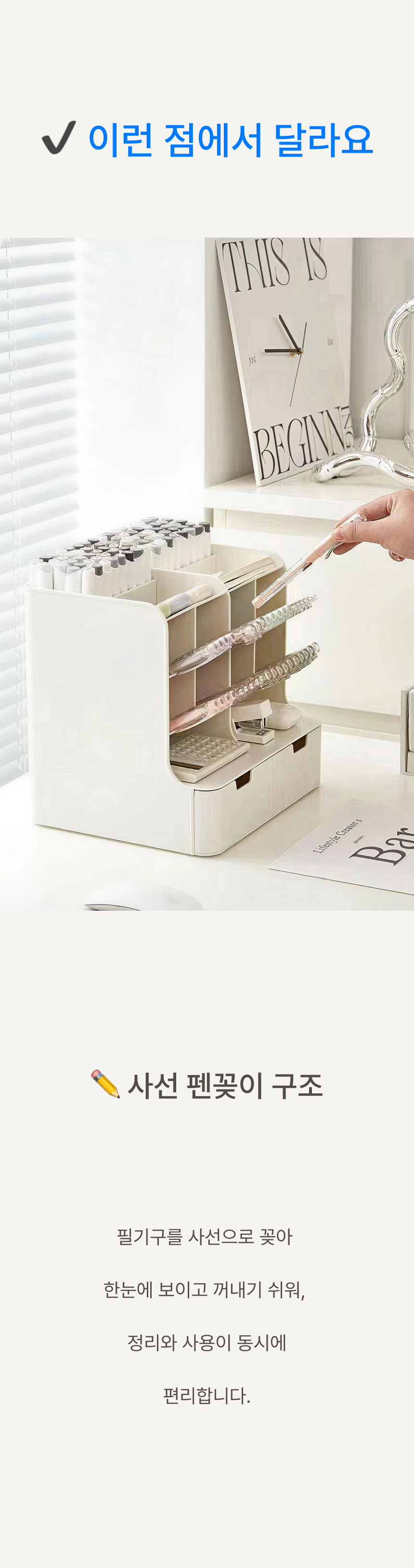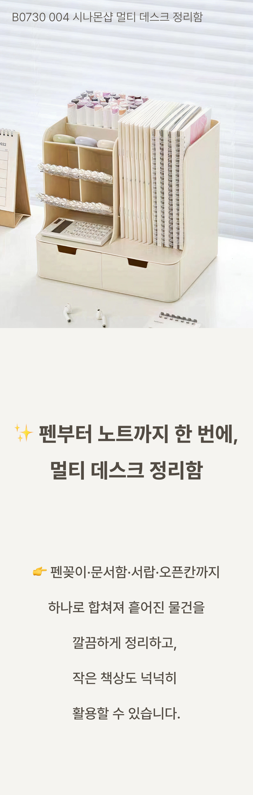 화이트 컬러의 감성 디자인으로 정리는 물론 인테리어 소품 역할까지 안전한 라운딩 모서리에 튼튼한 소재로 오래도록 안정감 있게 사용할 수 있는 데스크정리함입니다.