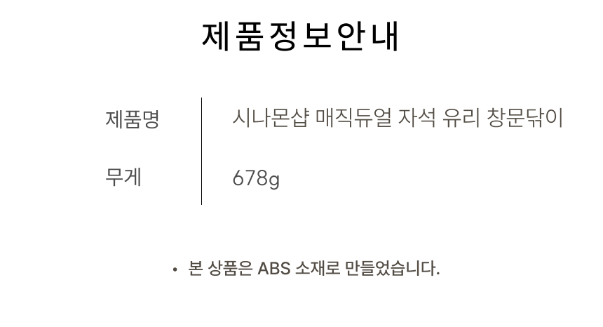 미세한 스크래치, 작은 점 등은 재질 특성 상 제조과정에서 발생되는 자연스러운 현상으로 반품 및 교환 사유에 해당하지 않습니다.