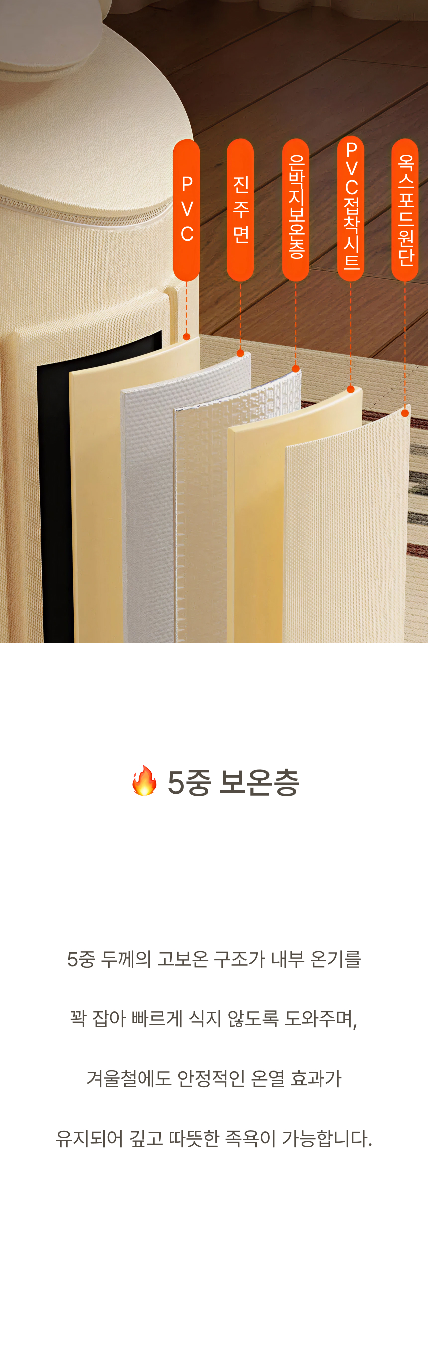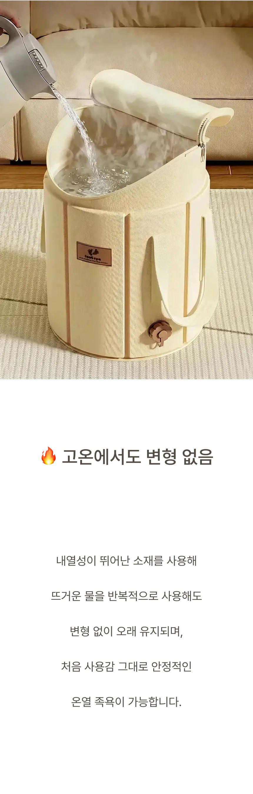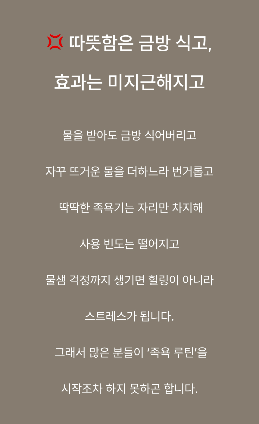 발부터 종아리까지 깊숙하게 잠기는 5중 보온층 + 뚜껑 설계로 온기를 180분까지 유지합니다.