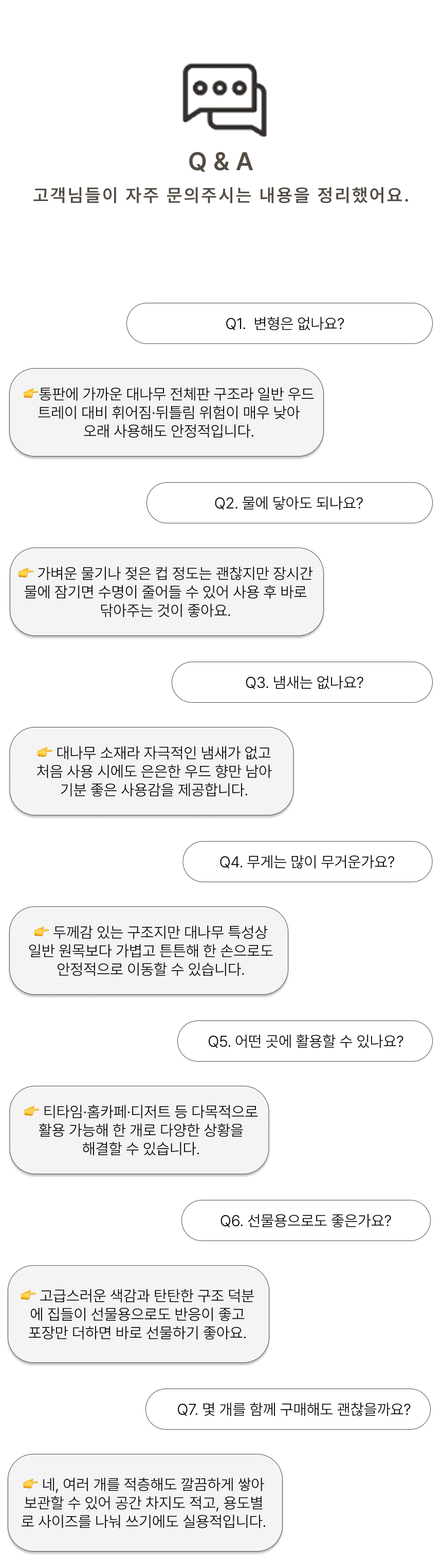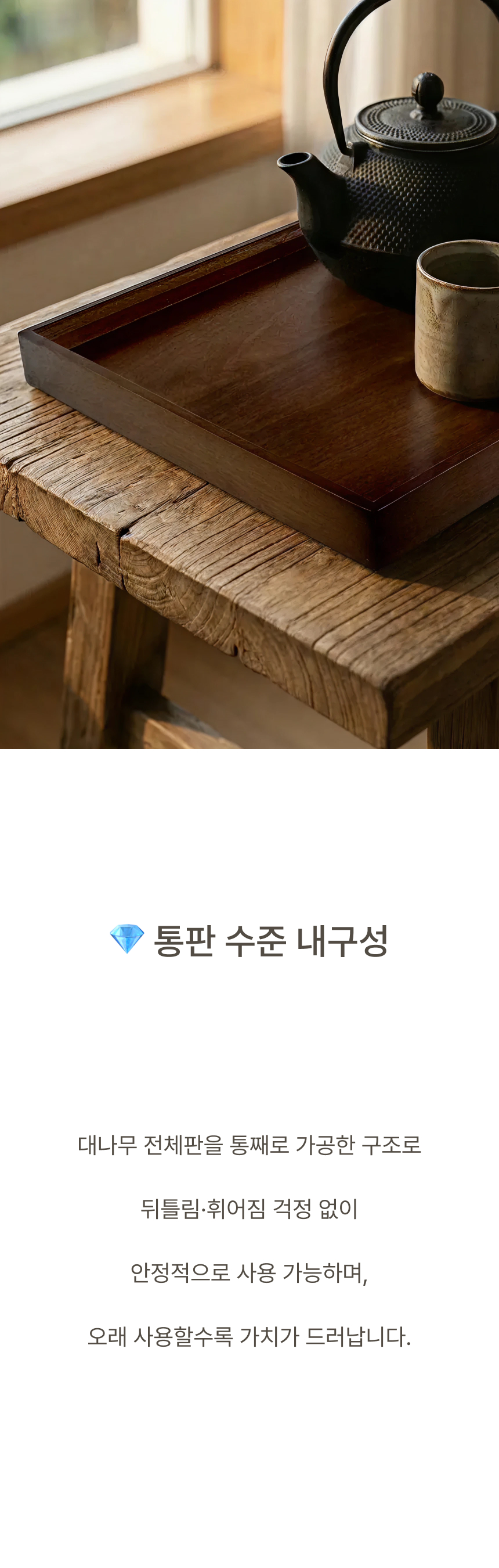 통판 구조의 대나무 소재로 휘어짐 없이 안정적으로 사용 가능해 오래 쓸수 있고 차분하고 고급스러운 분위기를 연출할 수 있어요.