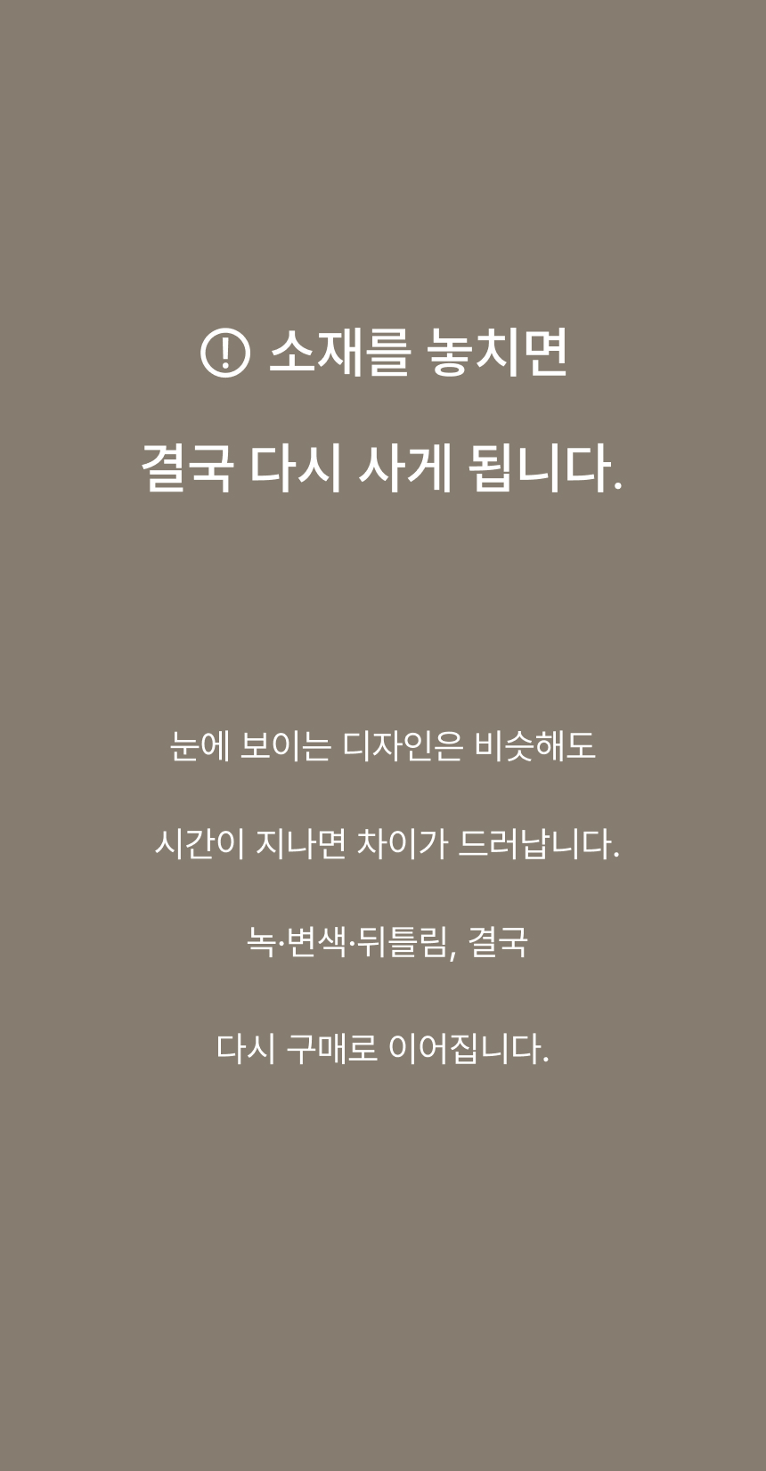 미세한 스크래치, 작은 점 등은 재질 특성 상 제조과정에서 발생되는 자연스러운 현상으로 반품 및 교환 사유에 해당하지 않습니다.
