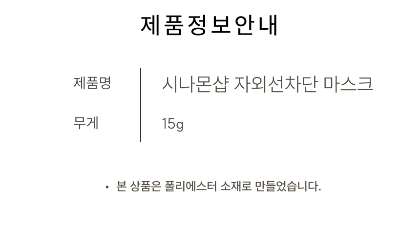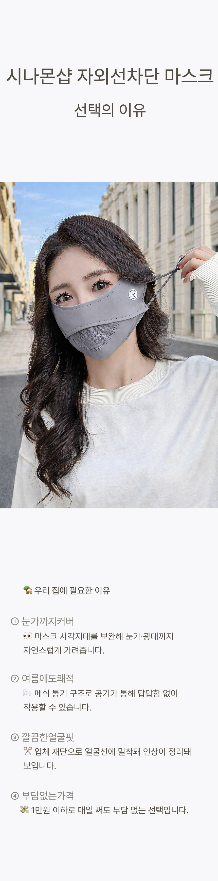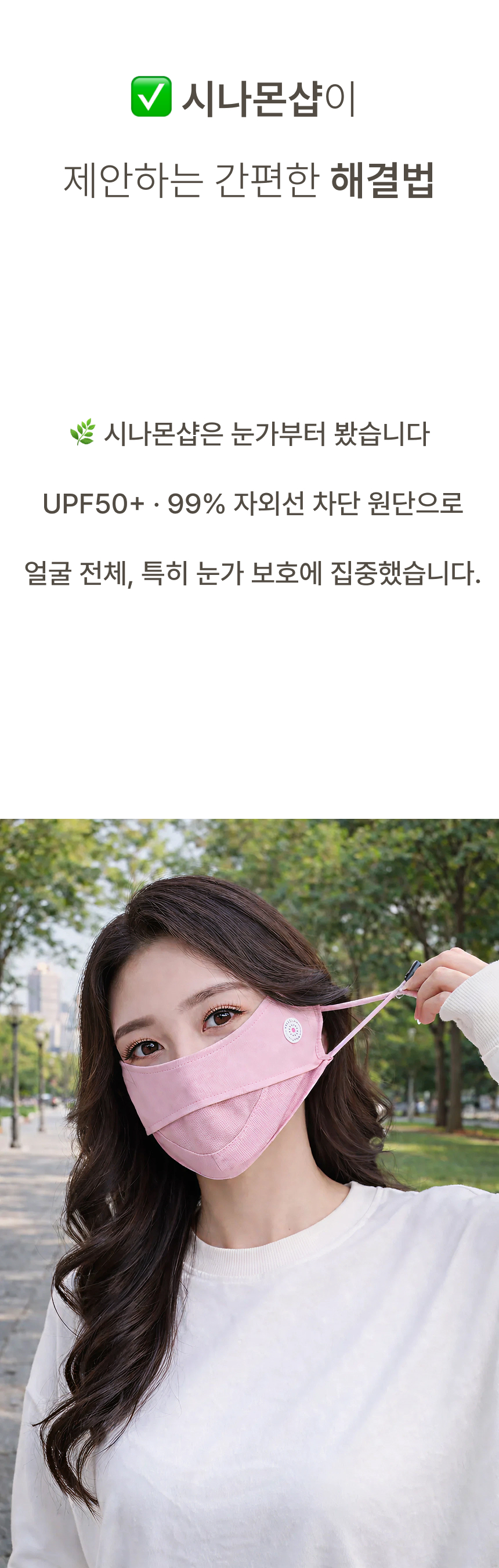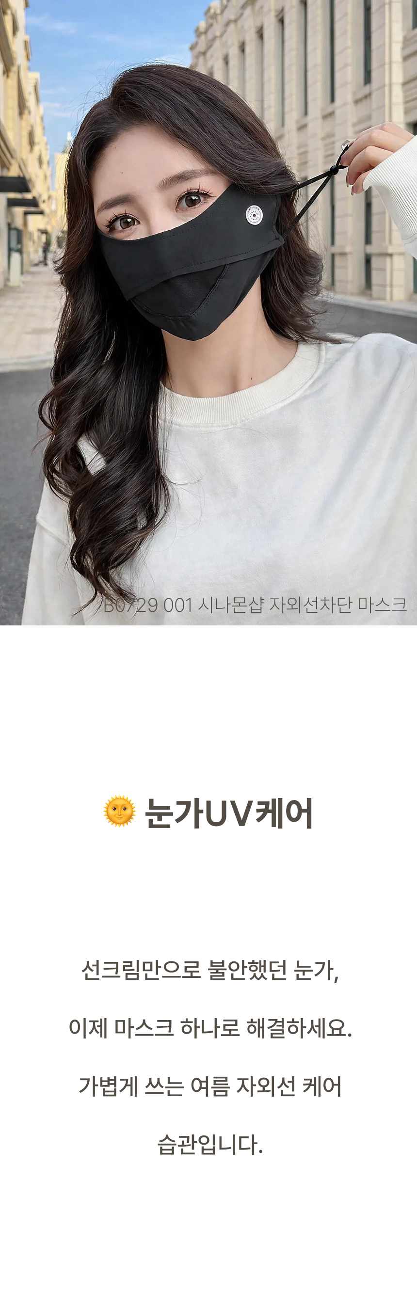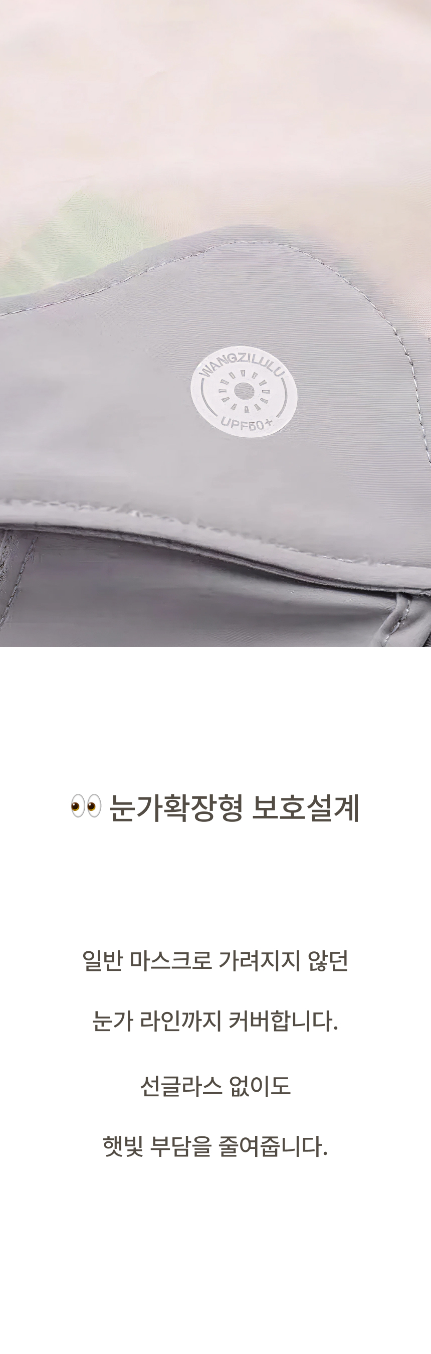 자외선 차단 원단으로 햇빛 아래에서도 얼굴 보호에 도움을 주는 자외선차단 마스크입니다.