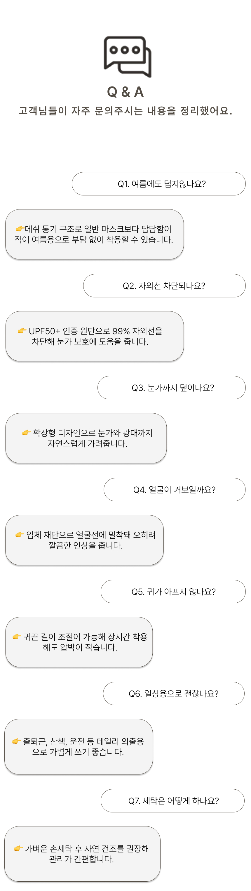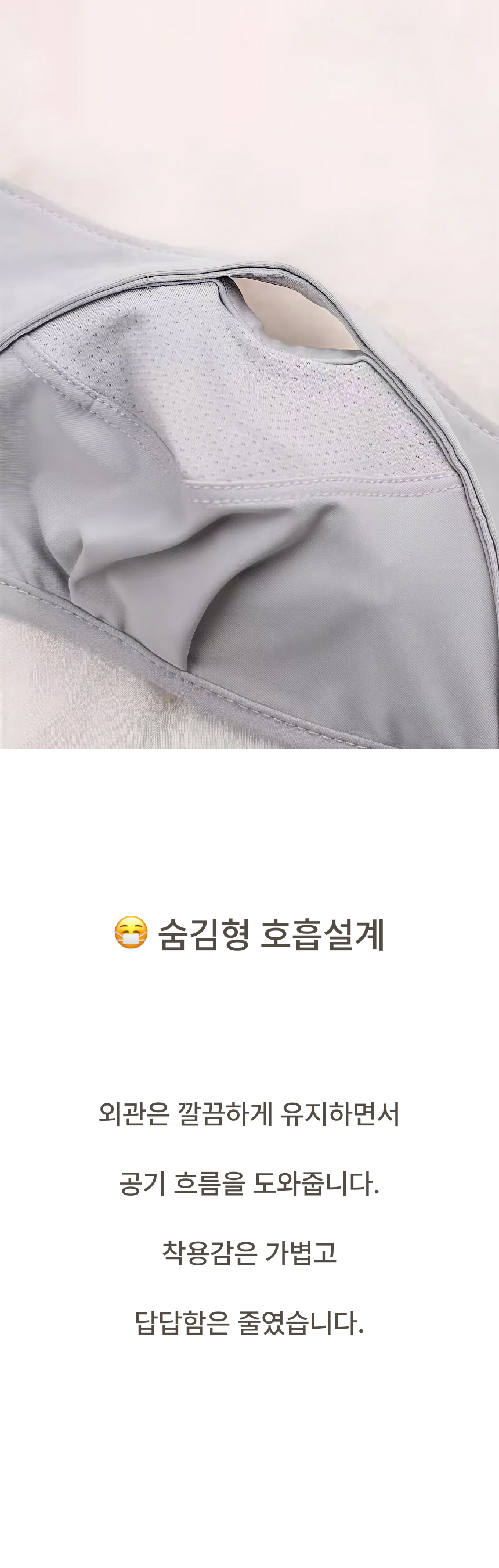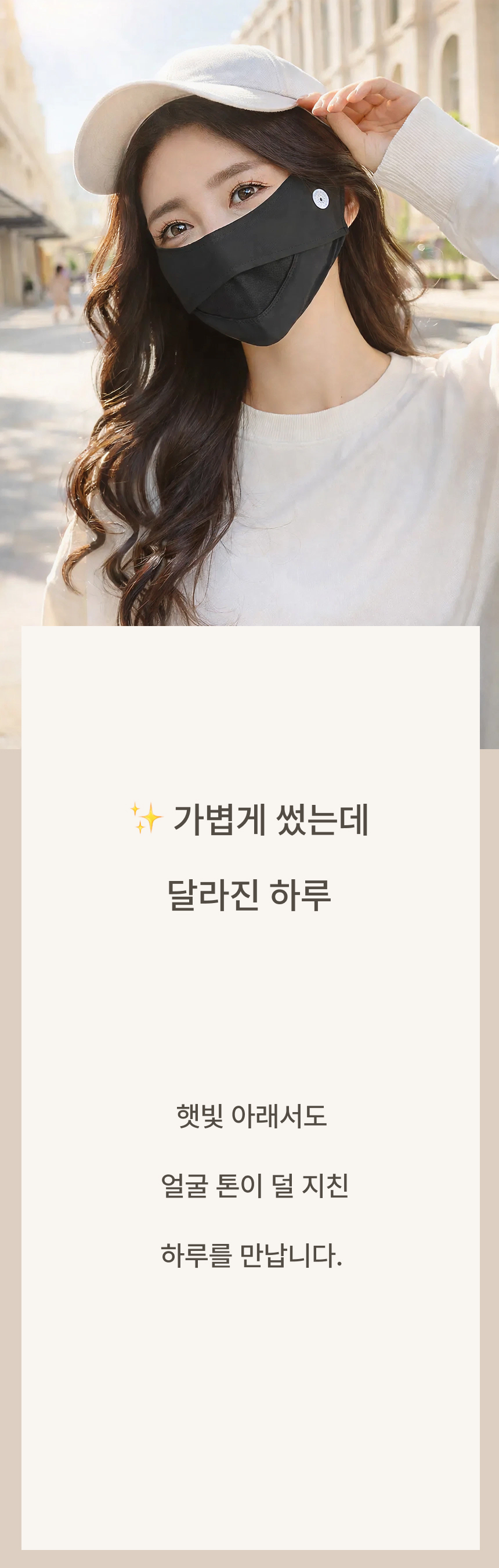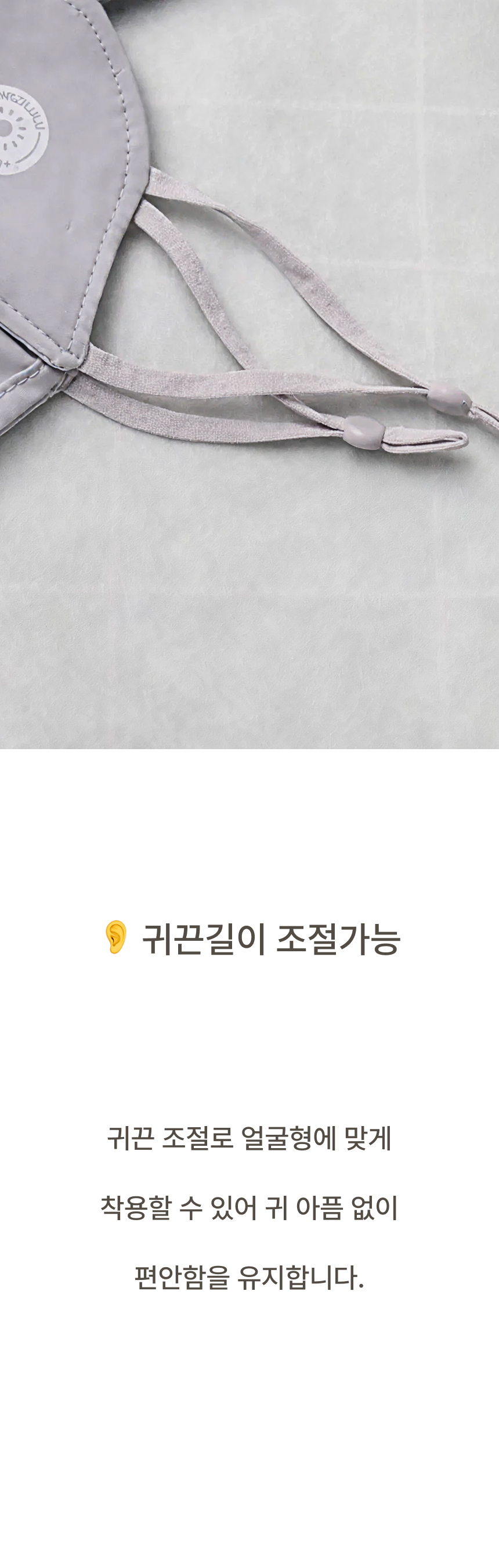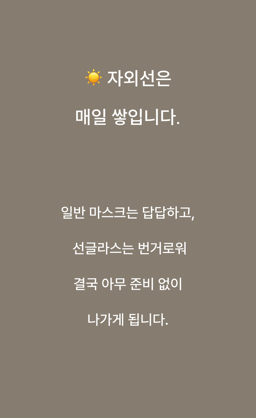 자외선 차단 원단으로 햇빛 아래에서도 얼굴 보호에 도움을 주는 자외선차단 마스크입니다.