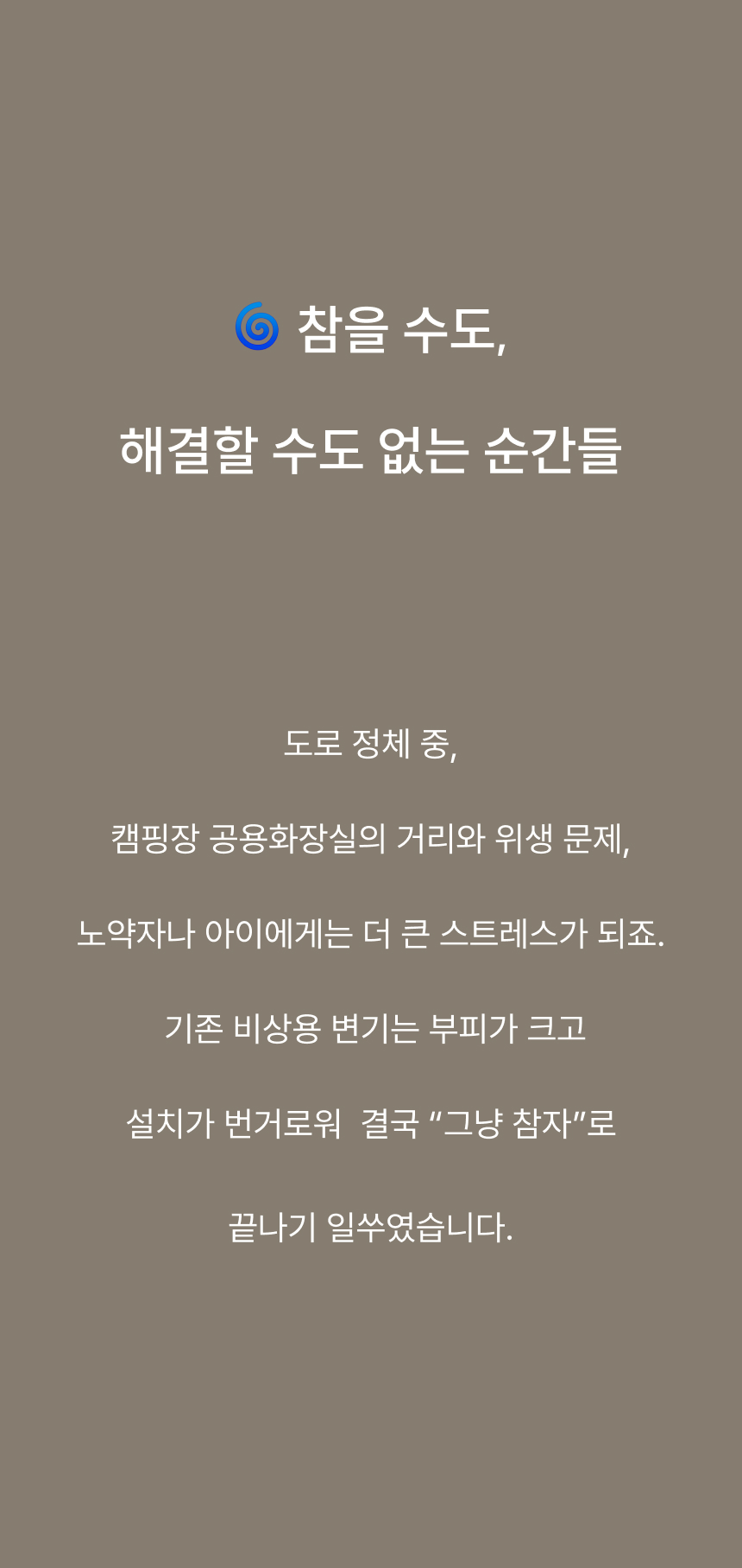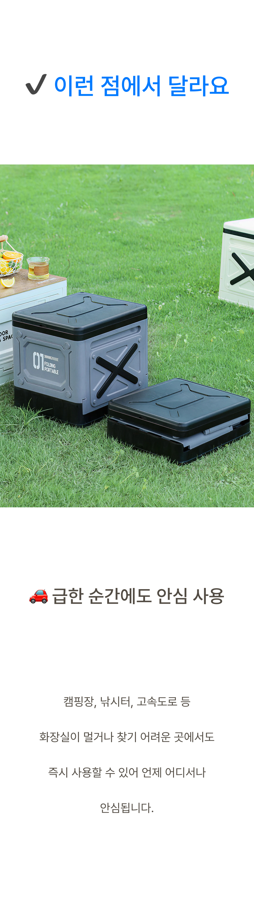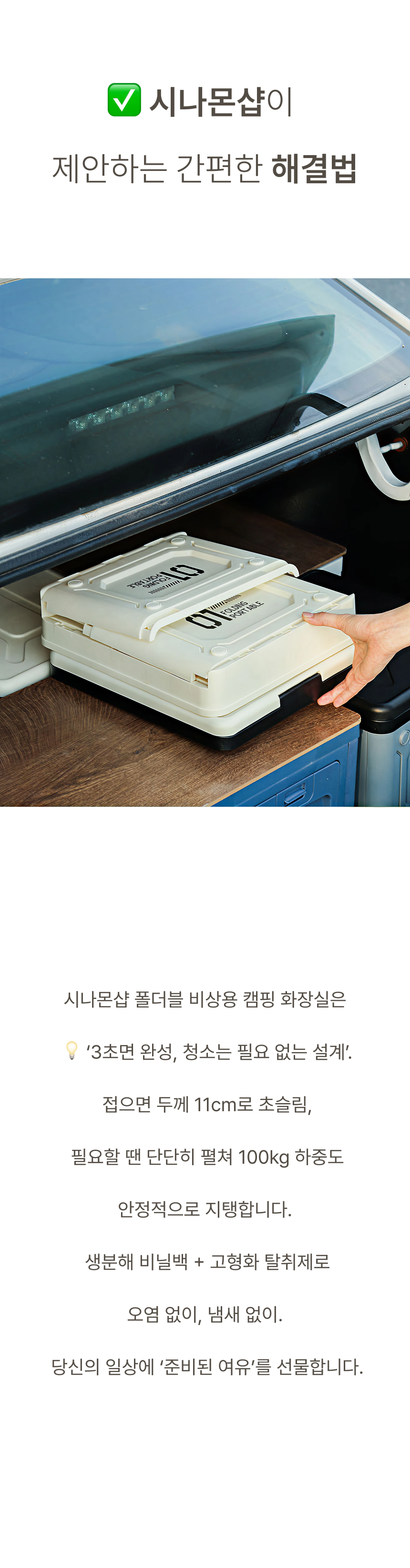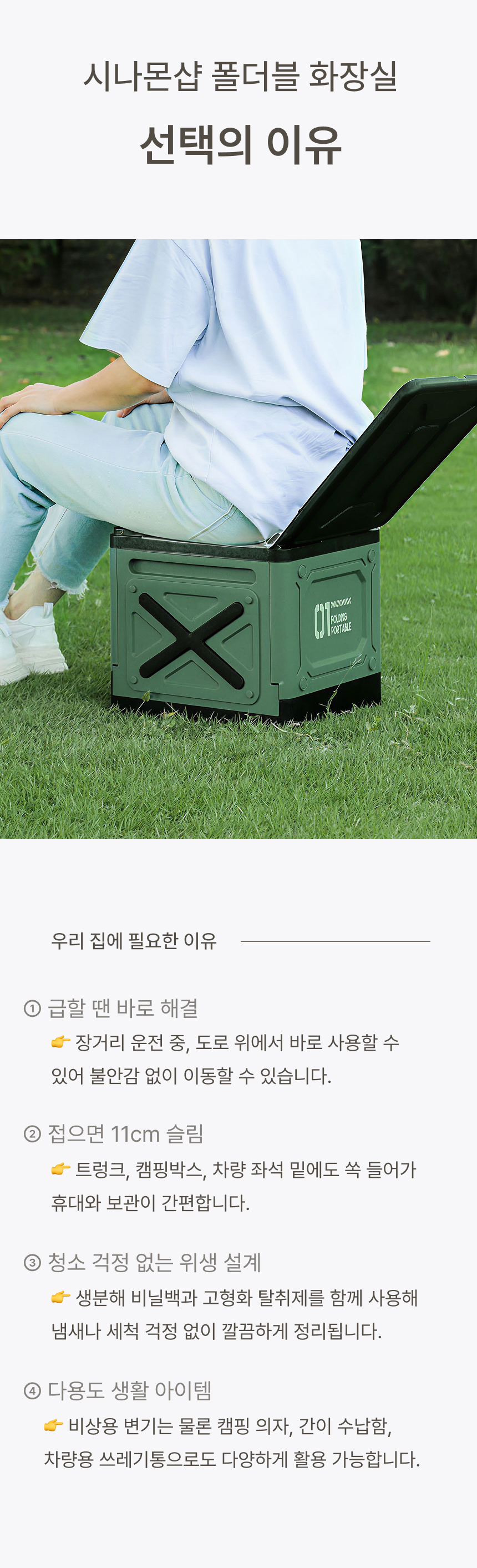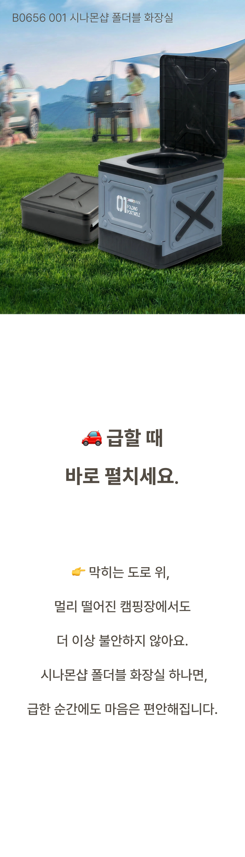 누구나 쉽게 어디서든 사용할 수 있는 비상 화장실이에요.