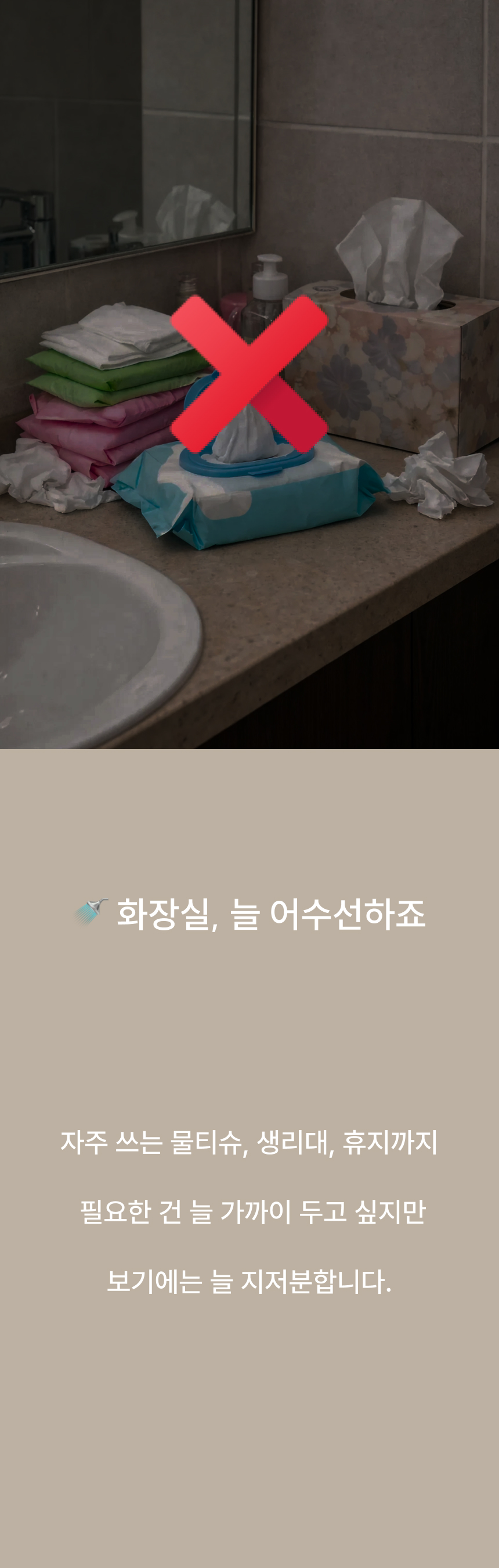 무타공 욕실 수납함입니다.