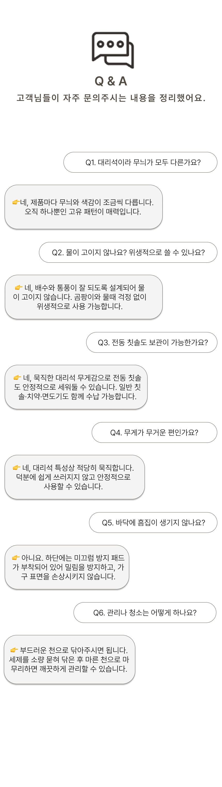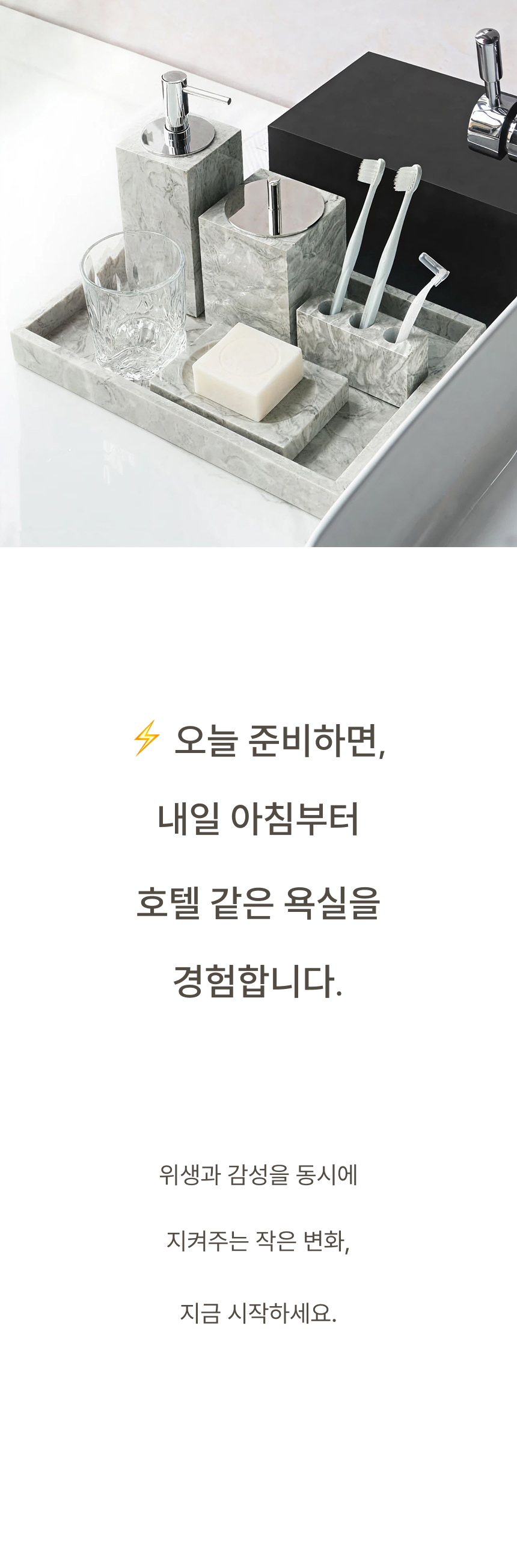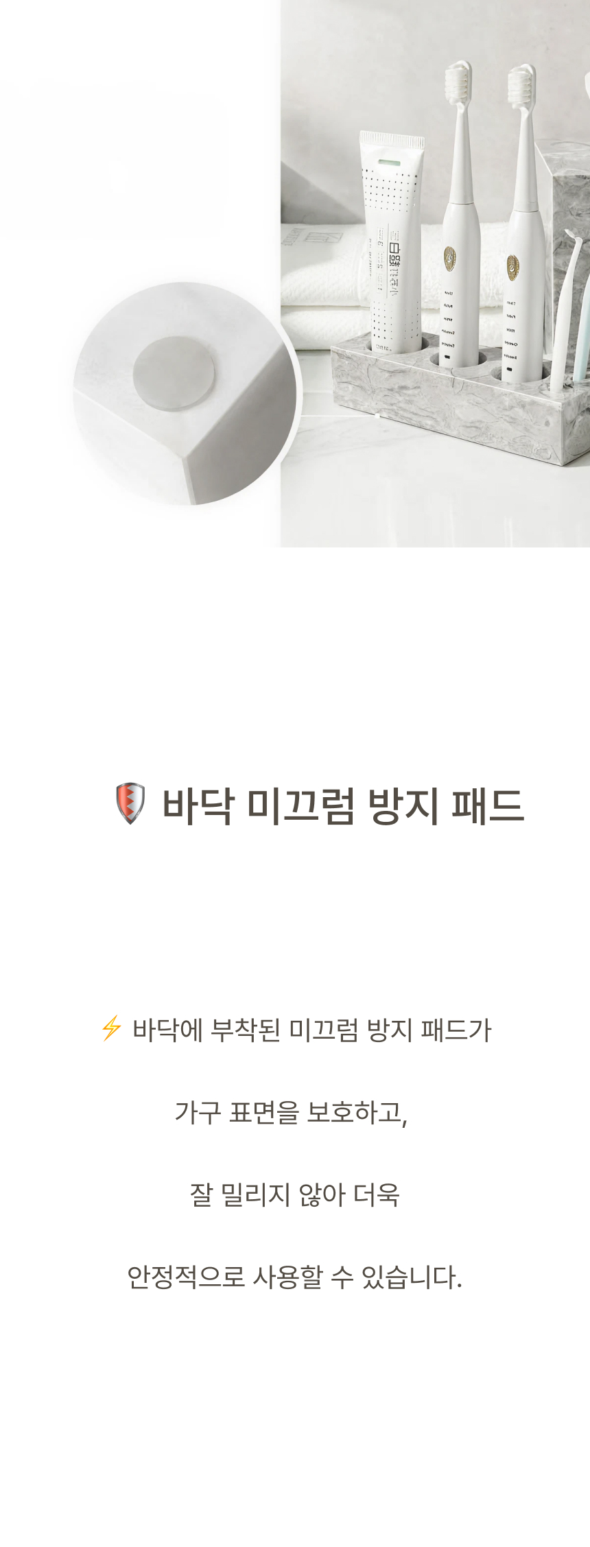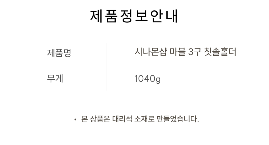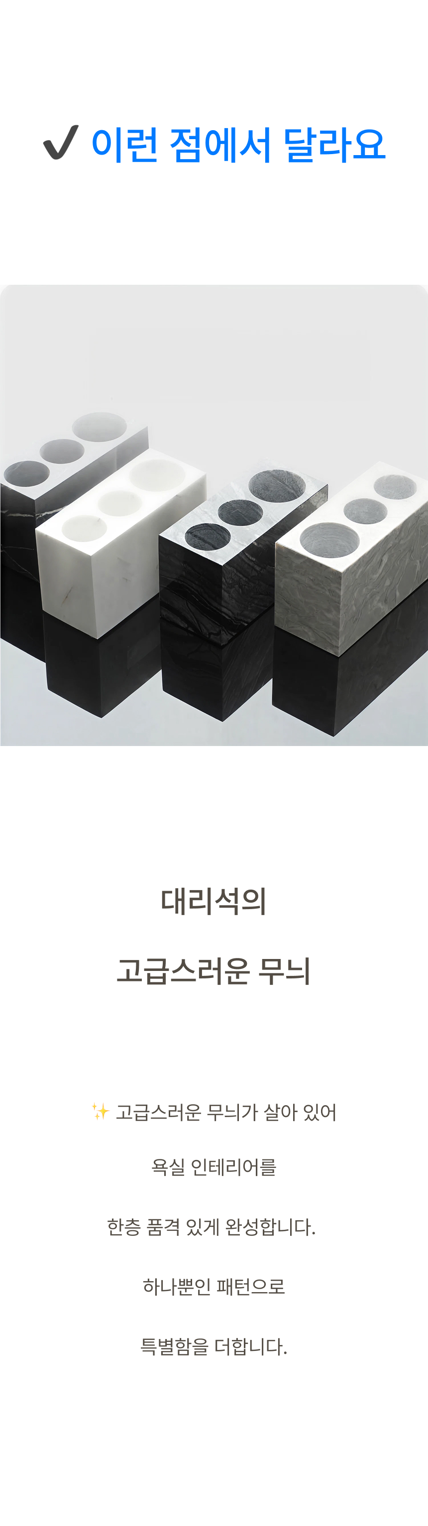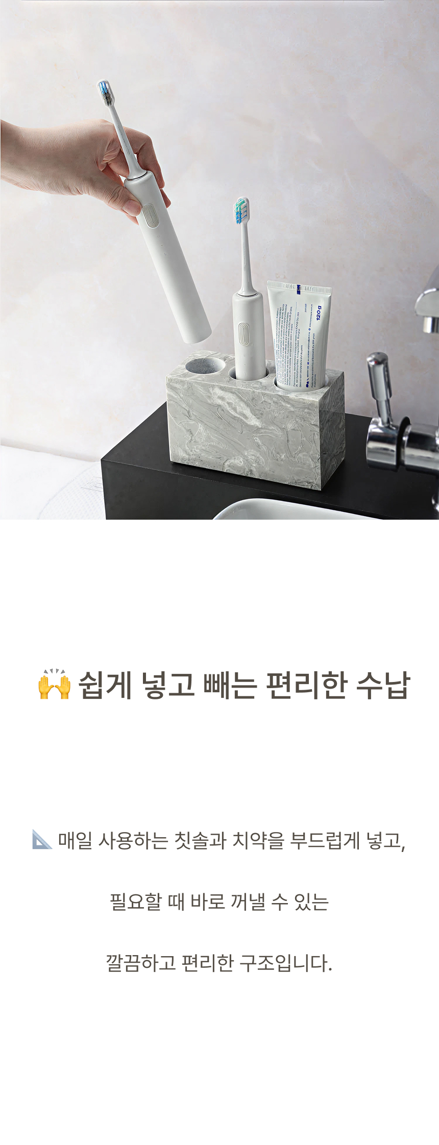 고급스러운 대리석 질감으로 욕실 분위기를 호텔처럼 바꾸고 플라스틱이 아닌 묵직한 대리석으로 흔들림 없이 안정적으로 보관이 가능한 마블 3구 칫솔홀더입니다.
